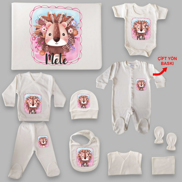 Aslan Tema İsim Baskılı Hastane Çıkış Seti (0-3 Ay)