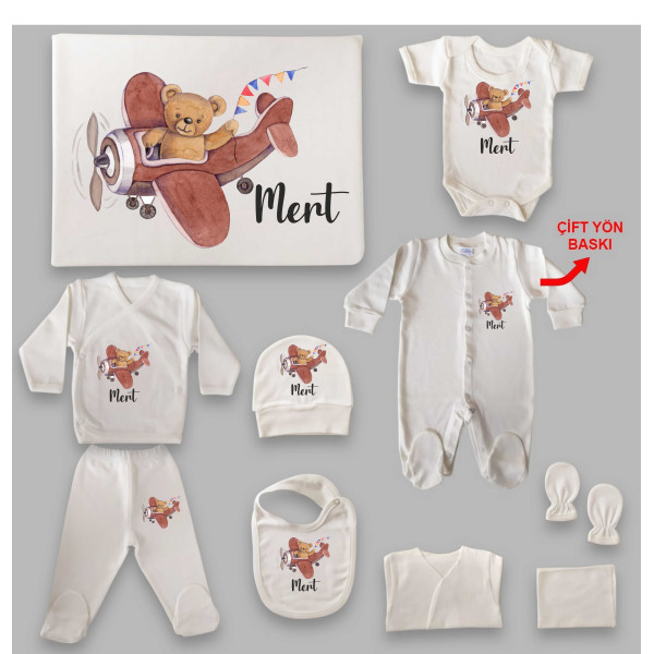 Ayıcık Tema İsim Baskılı Hastane Çıkış Seti (0-3 Ay)