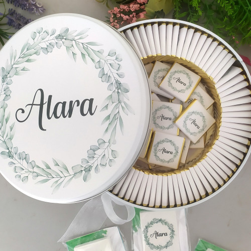 Metal kutu üzerine direkt baskı olup, kesinlik solma yapmaz, zamanla silinmez (Herhangi bir ürün üzerine sticker vs kullanmıyoruz,)bebek çikolatalarını 50-75-100 adetlerde sipariş verebilirsiniz 50-75 adet çikolatalar da 17.5 cm kutu 100 adet çikolatalar da 21.5 cm kutu ile gönderim yapılmaktadır.4-5 iş günü için de kargoya verilir