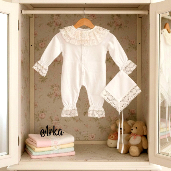 2'li TULUM SET hastane çıkış set naturel 1. Sınıf % 100 pamuk beyaz kumaş üstüne, özel isimli olarak bebeğinizin hassas cildine uygun G.O.T sertifikalı organik su bazlı tek yön baskı ile yapılmıştır. Yazı fontu görseldeki gibi olacaktır başka bir yazı fontu ya da tasarım isterseniz bizimle iletişime geçiniz.