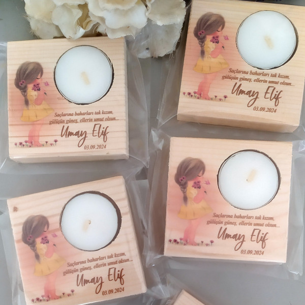 Özel organizasyonlarınız da, doğum günü, baby shower,hastane hediyesi,nişan hediyesi,nikah hatırası olarak, yada 40 mevlüt hediyesi olarak düşenebileceğiniz, bu hediyelik AHŞAP KARE KÜTÜK MUM sizden sevdiklerinize en güzel hatıra... ürün tek tek jelatin paketi ile gönderilir. Direkt ürün üzerine baskı işlemi yapılır solma yapmaz zamanla silinmez.