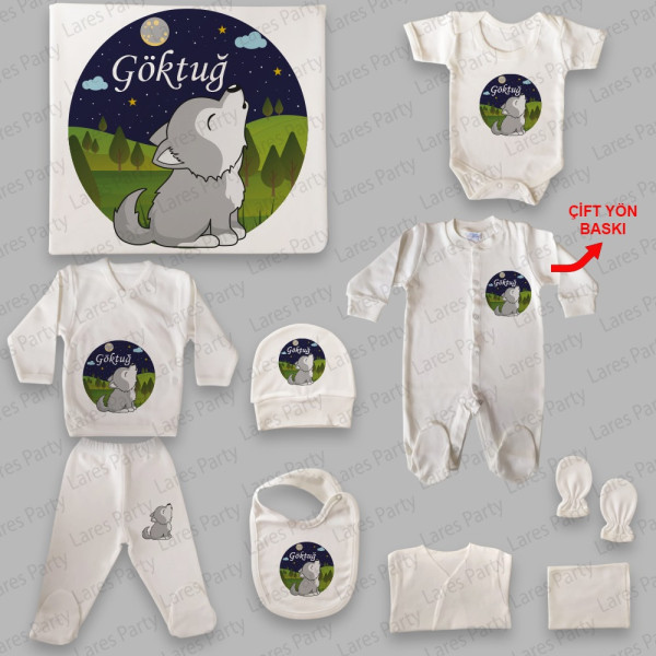 Kurt Tema İsim Baskılı Hastane Çıkış Seti (0-3 Ay)