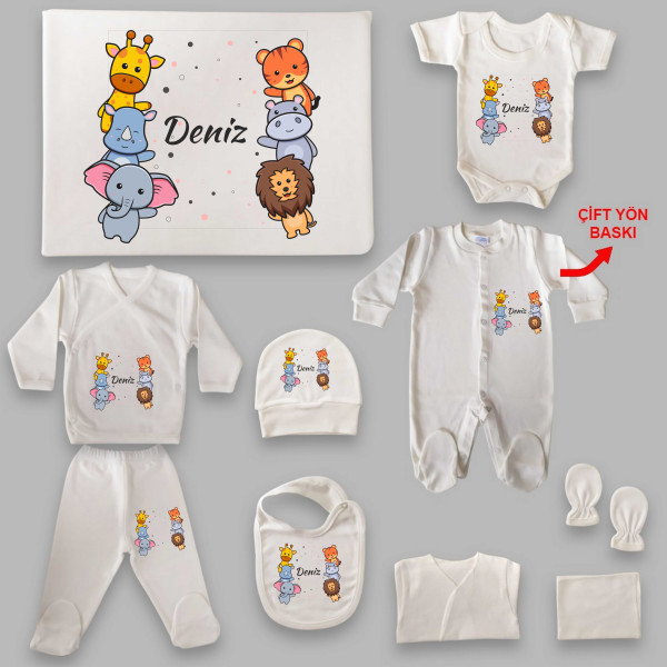 Safari Tema İsim Baskılı Hastane Çıkış Seti (0-3 Ay)