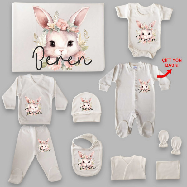 Tavşan Tema İsim Baskılı Hastane Çıkış Seti (0-3 Ay)