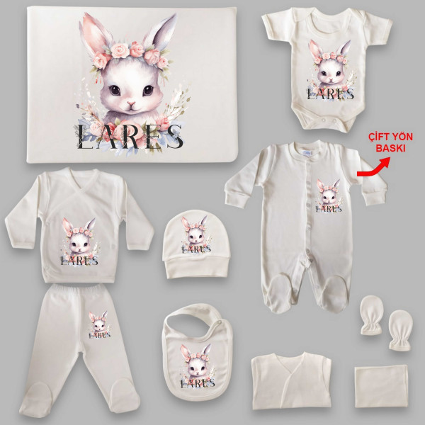 Tavşan Tema İsim Baskılı Hastane Çıkış Seti (0-3 Ay)